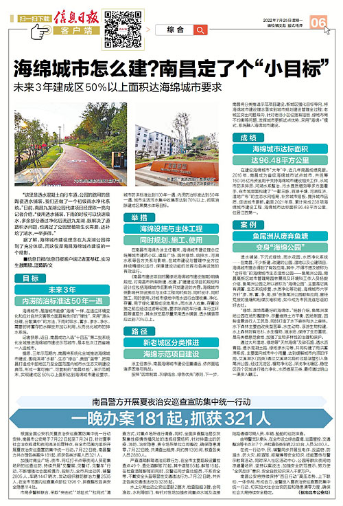 記者獲悉,近日,南昌成功入選“十四五”第二批系統化全域推進海綿城市建設示范城市,是本批次江西省唯一入選城市。