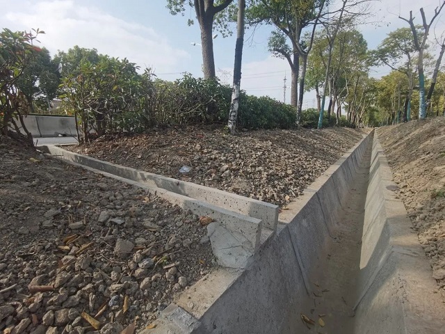 在趙重公路新豐支路至滬常高速段,由于道路兩側地塊標高較高,排水溝淤堵、填埋導致雨天經常出現內澇情況。針對該路段積水原因,改造工程重點解決路面積水匯流及排水出路問題,在非機動車道外側新建流水槽,將非機動車道外側積水引流至道路外側,翻挖新建邊溝、雨水連通管和雨水口,實現及時排水。“之前道路設計是自排水的,依靠道路兩側的土溝收集雨水,隨著這幾年道路周邊地塊開發(fā),土溝已經不滿足排水要求,所以按照五年一遇的暴雨降水量,在道路兩側增設混凝土明溝收集道路雨水,現在施工已經完成,觀察下來,道路沒有發(fā)生過積水問題。”青浦區(qū)道路運輸管理事務中心工作人員徐華介紹。
