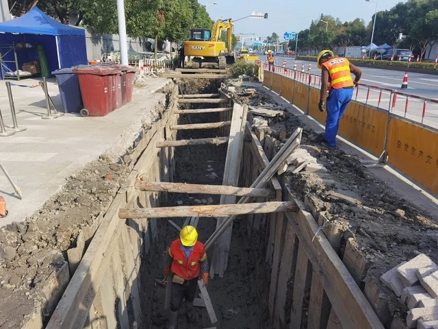 在外青松公路千新公路至油墩港路段,積水點改造項目進入到排水管道鋪設和雨水井施工的收尾工作。據該項目負責人介紹,以往每逢暴雨期間,外青松公路、千新公路交叉口積水嚴重,對周邊人員正常出行造成很大的影響。為徹底解決積水問題,在外青松公路道路新建雙排管口直徑為1000毫米雨水管道,自千新公路西側起排,收集道路路面及兩側地塊雨水后排入油墩港,減輕片區(qū)的排水壓力,解決困擾周邊居民已久的內澇問題。“之前的排水系統(tǒng)年代久,管道積淤情況嚴重,而且這邊道路地勢比較低,非常容易積水。這次改造施工主要以大口徑的管道的排設為主,在非機動車道上增設進水井,在雨量大的時候可以及時水排走,達到解決積水問題的效果。”積水點改造項目經理張源說。
