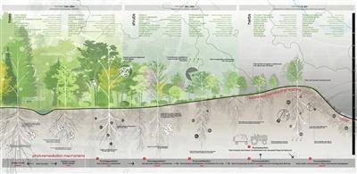董珂等人在獲獎作品中采用的是植物修復的技術修復“棕地”土壤,即利用高效累積植物的生長活動,將土壤污染物吸收轉移進入植物體,然后對植物進行收割和處理,從而實現修復污染土壤的目的。而這種“修復”,則體現了“城市雙修”的理念。
