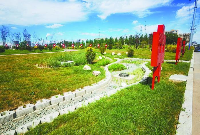 黨的二十大報告指出,要推動綠色發展,促進人與自然和諧共生。四平海綿城市建設堅持生態優先、節約集約、綠色低碳,注重全生命周期優化設計。針對城市發展中建筑垃圾和農作物秸稈處理困難等問題,引入全再生骨料生物滯留設施,創新性地將建筑垃圾、秸稈等原材料,加工為再生土壤有機質海綿設施填料,并應用在多個項目的雨水花園中。該技術結構簡單,無需用土工布包裹排水盲管,不易堵塞、結構穩定,且抗融雪劑性能強、水質凈化效果好,具有低成本、低能耗、低維護的“三低”優點。此外,一批標準化的雨水導流槽、進水口、沉淀槽等產品和做法,也將在四平實現“產學研”落地和產業化生產。