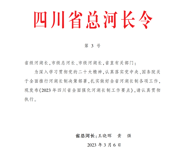 2023年四川省全面強化河湖長制工作要點