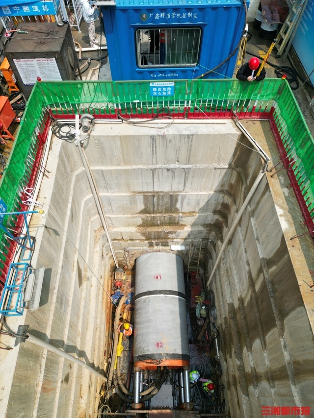 由長(zhǎng)沙市芙蓉區(qū)朝陽路的一處圍擋而入,映入眼簾的是一處深基坑工作井。井深10米,井底有一條直徑2米、長(zhǎng)267米的管道正在施工。三湘都市報(bào)記者隨后系上安全帶,佩戴防墜器,沿著梯子向下來到管道口。路面之上,車水馬龍,10米之下,只能隱約能聽到管道內(nèi)作業(yè)人員施工的聲音。
