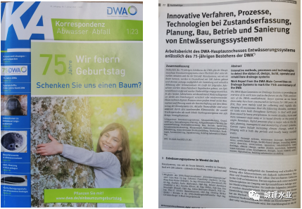為紀念德國水協DWA成立75周年,DWA下屬的排水系統主委員會在德國水協刊物《Korrespondenz Abwasser Abfall》(污水與垃圾專業雜志)(2023年1月刊)發表了題為“排水系統現狀調查,規劃,建設,運營,修復的創新工藝,方法,技術”的文章。