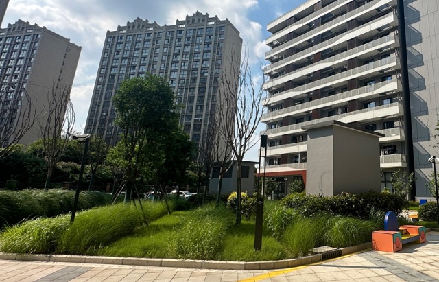 項(xiàng)目還采用分散設(shè)置的下凹綠地、雨水花園,消納周邊雨水,并應(yīng)用淺層調(diào)蓄設(shè)施,構(gòu)建雨水快速導(dǎo)入、自然凈化、復(fù)合利用的海綿系統(tǒng)。