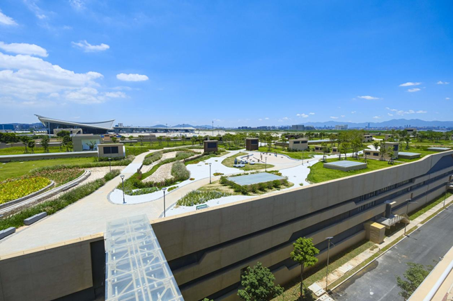 高崎水質凈化廠規劃總規模50萬噸/日,一期規模20萬噸/日。地處廈門環島路優美海岸帶上,擁有絕佳的岸線景觀,污水處理廠建設時采用一體式半地下集約式的建設形式,上層為公園,中間層是運營維護空間,布置污水處理設備,地下層則為污水污泥處理構筑物和管道,將污水處理的工藝單元包裹在一個大的建筑箱體內,污水處理過程中臭氣和噪聲均在建筑箱體內得到有效處置,將城市功能、運營維護、污水處理進行上下疊合,與市民共享美麗的海岸線風光,既實現土地資源的高效利用,又將景觀資源帶給市民。改變了早期污水處理廠固有工業風格,與周邊環境更加融合,將“鄰避效應”轉化為鄰利效益,為廈門T4航站樓開發預留了景觀延伸,構建了全新的生態空間。
