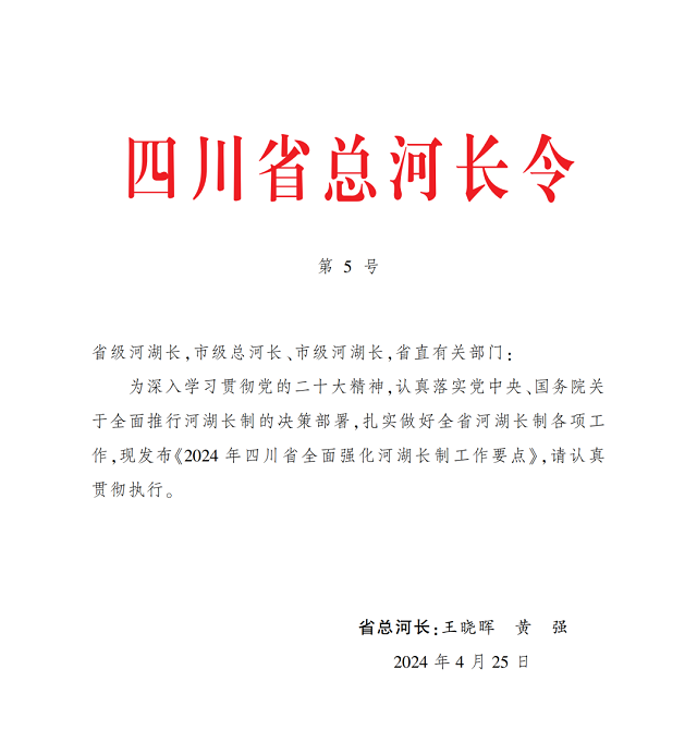 2024年四川省全面強化河湖長制工作要點