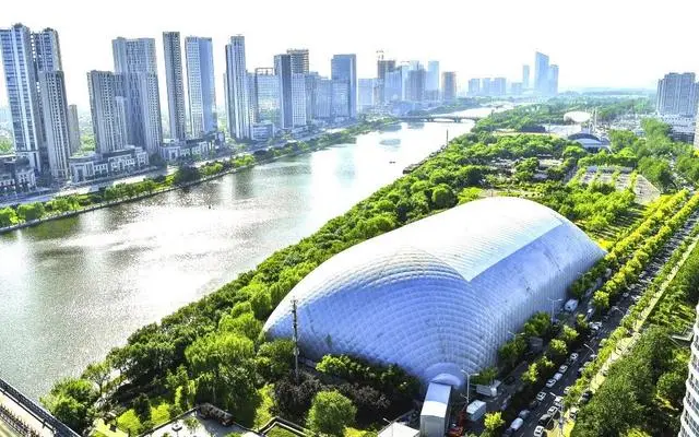 一是規模最大。氣膜長165米、寬80米、高37米,氣膜內最大凈高差達60米,建筑面積13200平方米,氣膜展開面積達21000平方米。