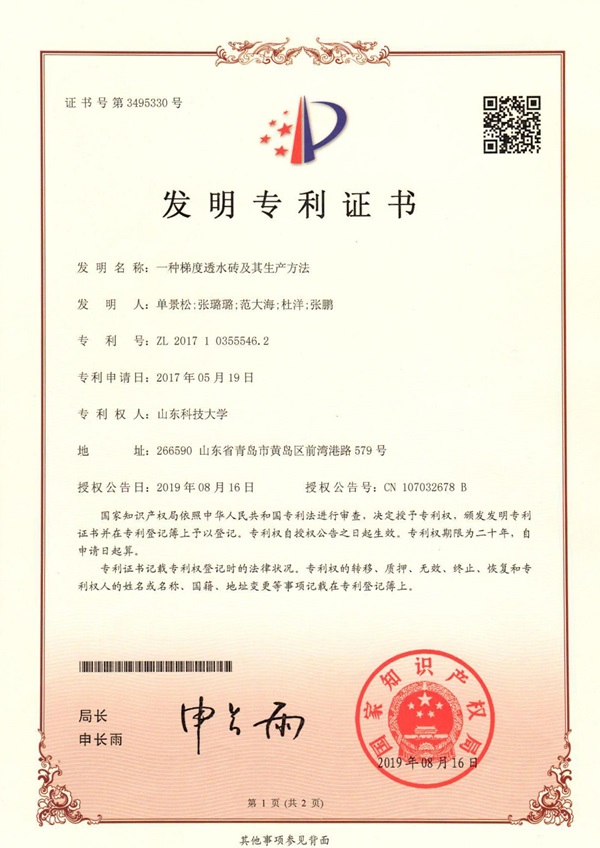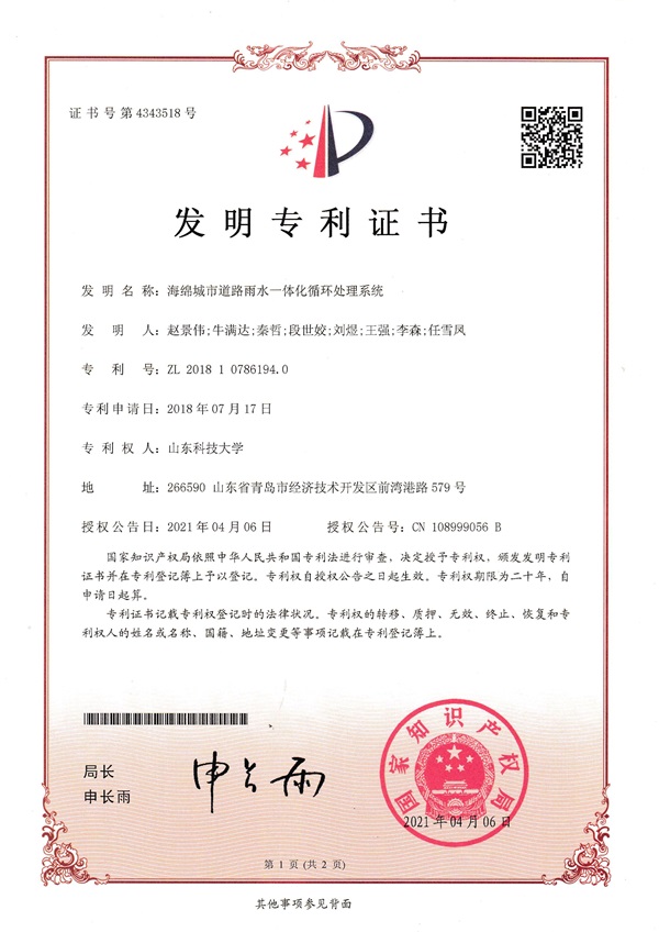 市政道路硬化面積的迅速擴張已成為城市內澇的主要致災因素,在國家建設“源頭減排、蓄排結合、排澇除險、超標應急”的城市防洪排澇體系的背景下,市政道路開始推行海綿化改造。但由于各路面結構最優滲排水設計不明確,未形成海綿城市道路雨水收集與利用系統,導致海綿城市道路實際施工難以落地。我校趙景偉教授、秦哲副教授、單景松教授團隊針對海綿城市道路的施工難題,圍繞海綿城市道路結構與整體設計,研發了一種新型高性能聚合物透水水泥混凝土,并創新了聚合物透水水泥混凝土施工工藝,最終形成了海綿城市透水路面鋪裝關鍵技術體系,并基于此開發了海綿城市道路自調節雨水收集與綜合利用系統成套關鍵技術。研究成果有力推進了海綿城市道路的發展,提升了行業質量水平。相關成果授權發明專利10項,形成了海綿城市道路建設與模型試驗專利群,相關成果已在青島、濟南、西安、石林等地得到廣泛應用。(記者:任波)