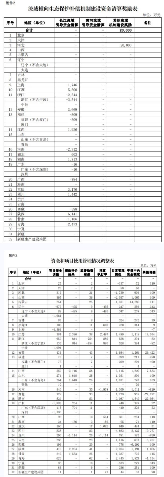 三、此次下達資金對建立起橫向生態保護補償機制且完成年度清算的四川省、重慶市、湖北省、湖南省、江西省、安徽省、江蘇省分別給予獎勵,獎勵資金從其他未建立起機制的省份中扣減。同時,對河北省、北京市簽訂潮白河流域補償協議,積極推動流域橫向生態保護補償機制建設給予肯定和鼓勵,后續將視省級資金清算情況進行獎勵支持。各省要按照相關文件要求,積極主動開展合作,加快與鄰近省建立機制,已獲得獎勵資金的省份要推動建立長效機制。