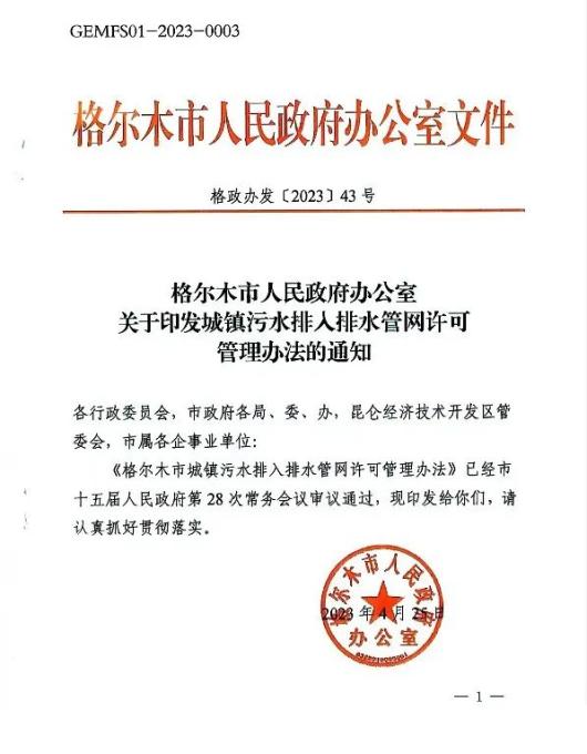 格爾木市城鎮污水排入排水管網許可管理辦法