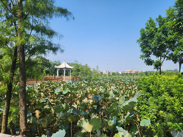 在潮陽(yáng)金浦梅花濕地,棧道、涼亭、荷花、白鷺與周?chē)牡咎锎?lián)成一幅美輪美奐的生態(tài)畫(huà)卷。