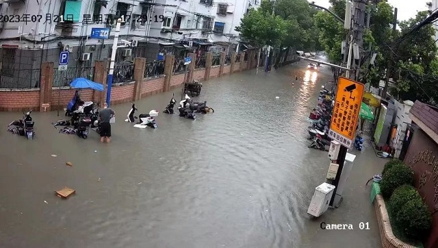 居民:去年7月21號嘛,漲得最厲害了,后來書記安排我們就住在小區托老所里,今年本來提心吊膽,我半夜出來這個水就這么一點點,搞不到我家里去了。