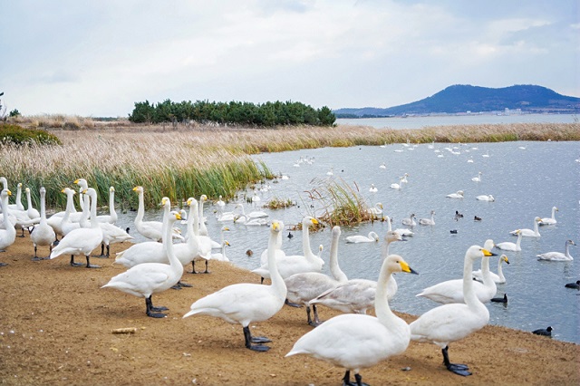 然而,每年的秋冬時節,成群結隊的天鵝卻選擇在這片看似缺水的土地上棲息繁衍,榮成櫻花湖因此被譽為“城市中的天鵝湖”,吸引了大量游客前來觀賞。