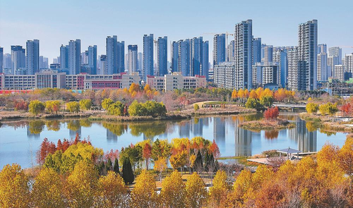 安徽省亳州市不斷推進生態城市建設,圖為高新區鳳尾公園色彩斑斕,景色如畫。