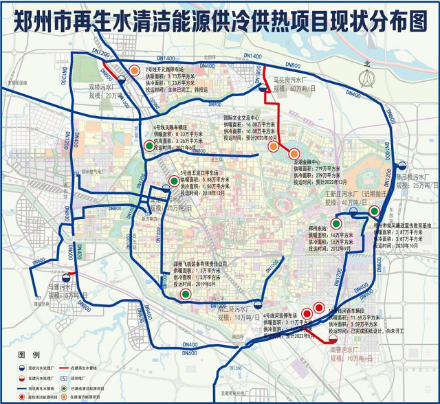 圖為鄭州市中心城區(qū)清潔能源項目現(xiàn)狀分布圖。