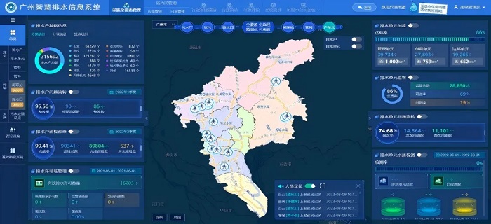 廣州市智慧排水以新城建排水智能化“全國標桿”和水務高質量發展為目標,建設形成“排水設施全覆蓋管理、城市內澇全周期管控、設施運行全時效監控、聯合調度有模型輔助”三全一有的智慧管控體系。