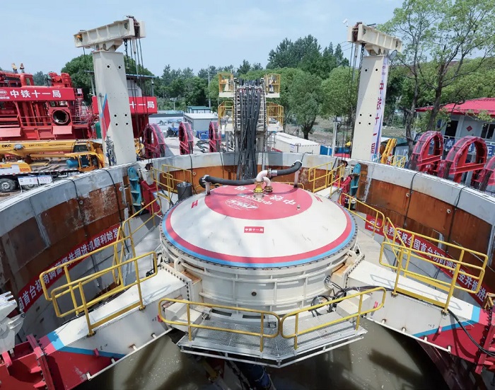 2025年6月18日,由中鐵十一局承建的上海虹莘排水泵站初雨調(diào)蓄管廊工程取得重要進(jìn)展,投用于該工程的國產(chǎn)超大直徑豎井掘進(jìn)機(jī)平穩(wěn)始發(fā)。圖為初雨調(diào)蓄管廊工程施工現(xiàn)場