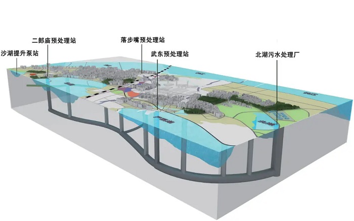 武漢大東湖深隧則展現(xiàn)了工程的規(guī)模效應(yīng)。作為當(dāng)前國內(nèi)傳輸流量最大、輸送距離最長的污水深隧,其平均埋深超30米,最大限度減少了對淺層空間的影響。主隧全長17.5公里,覆蓋武昌、洪山、青山和東湖風(fēng)景區(qū)四個行政區(qū)。該系統(tǒng)可將半個武昌的污水運送至主城區(qū)外的北湖污水處理廠,服務(wù)大武昌片區(qū)130平方公里內(nèi)約300萬居民。自2020年9月運行以來,該工程累計輸水量已突破9億噸(相當(dāng)于7.5個東湖水量)。這項工程創(chuàng)新采用“污水走隧道、地上建花園”的集約化模式,既保障污水收集處理,又節(jié)省了中心城區(qū)寶貴土地。運行方面,通過智慧運營系統(tǒng)、健康監(jiān)測、無人機(jī)巡線及水下機(jī)器人等技術(shù)手段,實現(xiàn)了對深隧的智能化運維管理。這些技術(shù)手段有助于及時發(fā)現(xiàn)隱患、保障設(shè)施安全運行,為城市安全度汛提供重要支撐。