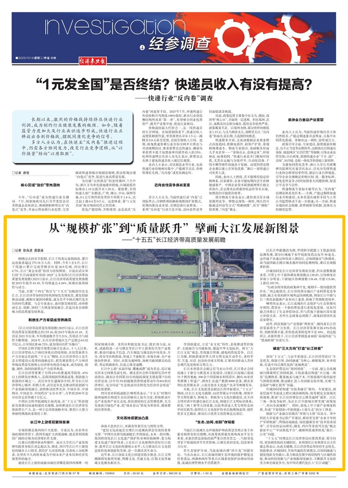 面向“十五五”,與會專家建議,長江經(jīng)濟(jì)帶需以“生態(tài)優(yōu)先、創(chuàng)新引領(lǐng)、協(xié)同融通”為核心,破解瓶頸、補(bǔ)齊短板,打造中國式現(xiàn)代化的“流域典范”。