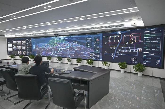 走進(jìn)上海市排水管理事務(wù)中心,上海市排水運行調(diào)度監(jiān)管平臺瞬間吸引了目光。輕輕一點,匯集中心城區(qū)三大片區(qū)與各郊區(qū)的污水治理網(wǎng)絡(luò)盡收眼底;指尖一滑,遍布全市的污水處理廠完整呈現(xiàn);再一放大,縱橫交錯的城市排水管網(wǎng)、星羅棋布的排水泵站與管道水位監(jiān)測點躍然屏上。降雨多少、積水多深、污水處理廠運轉(zhuǎn)如何……一切動態(tài),都實時匯聚于此,實現(xiàn)了“一屏觀全域”。