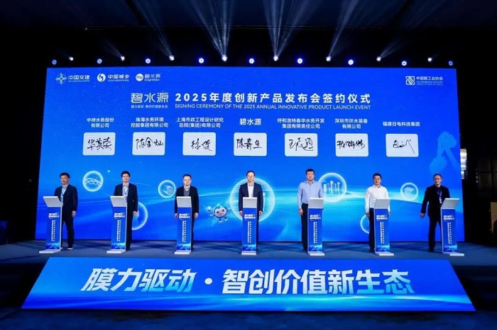 11月22日,由中國膜工業(yè)協(xié)會、中國交通建設(shè)集團有限公司(簡稱中交集團)、中國城鄉(xiāng)控股集團有限公司(簡稱中國城鄉(xiāng))及北京碧水源科技股份有限公司(簡稱碧水源)共同主辦的主題為“膜力驅(qū)動·智創(chuàng)價值新生態(tài)”膜技術(shù)高質(zhì)量發(fā)展論壇暨碧水源2025年度創(chuàng)新產(chǎn)品發(fā)布會在北京舉行。中交集團黨委常委、副總經(jīng)理楊義生,新加坡工程院院士、國際水協(xié)膜技術(shù)專家委員會主席黃浩勇,中國膜工業(yè)協(xié)會理事長鄭根江,中國城鄉(xiāng)黨委書記、董事長谷志文,中國城鄉(xiāng)副總經(jīng)理,碧水源黨委書記、董事長黃江龍出席活動并致辭,國家發(fā)改委資源節(jié)約和環(huán)境保護司原副司長趙鵬高,中交集團科學(xué)技術(shù)與數(shù)字化部總經(jīng)理張娟,國際水協(xié)會膜技術(shù)專家委員會前任主席、國際水協(xié)會膜技術(shù)中國專家委員會主席、清華大學(xué)環(huán)境學(xué)院教授黃霞等出席活動,大會由中國膜工業(yè)協(xié)會秘書長王繼文主持。