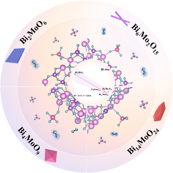 在最新研究中,團(tuán)隊(duì)合成并對比四種典型鉬酸鉍晶相,揭示其在高碘酸鹽活化中的差異,首次明確鉍—氧鍵活性、三價鉍暴露程度及表面電荷分離效率的關(guān)鍵作用。其中,二鉍六氧化二鉬憑借獨(dú)特的奧里維利烏斯層狀結(jié)構(gòu)與優(yōu)異電子行為,實(shí)現(xiàn)對典型抗生素氧氟沙星的超快速降解,且在多種天然水體、共存離子及連續(xù)流條件下保持高穩(wěn)定性。