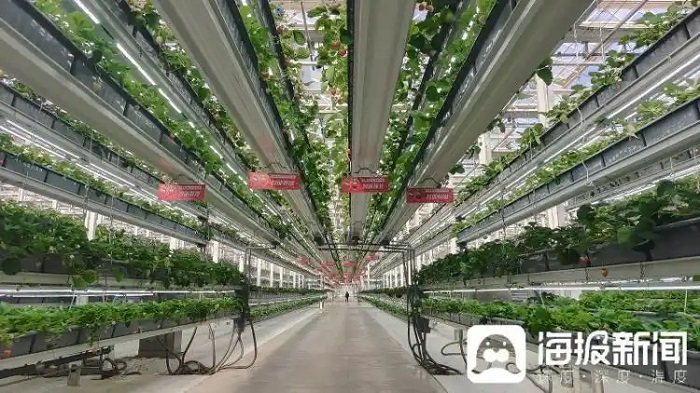 園區(qū)內2000余畝的現(xiàn)代農(nóng)業(yè)產(chǎn)業(yè)園重點發(fā)展了草莓、櫻桃、鱸魚養(yǎng)殖三大產(chǎn)業(yè)。連片的草莓棚采用精準滴灌技術,根據(jù)植物不同生長期的需求,通過芯片精準控制滴灌水量,全自動水肥閉合循環(huán)系統(tǒng)可收集和重新利用營養(yǎng)液,實現(xiàn)水和肥料的循環(huán)利用,實現(xiàn)單株耗水節(jié)約66%。在櫻桃大棚里,則靠著人工智能控制技術,給櫻桃樹“變換四季”,實現(xiàn)錯峰成熟,填補國內2、3、4月優(yōu)質櫻桃的市場空白期。