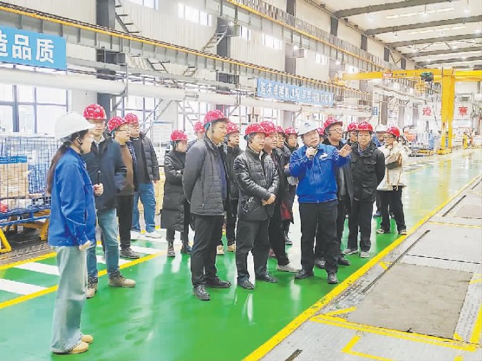 圖為項目組研發(fā)骨干和跟蹤指導專家組考察地下水循環(huán)井一體化設備柔性生產(chǎn)線。