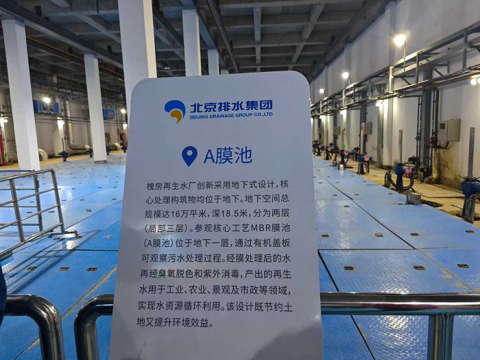 北京市槐房再生水廠是北京市“三年行動方案”建設項目,水廠規(guī)模60萬立方米/日,同步在廠區(qū)內(nèi)采用熱水解+消化+板框脫水的污泥處理工藝,實現(xiàn)污泥的無害化處置,是全國規(guī)模最大、技術領先的封閉式地下再生水廠。水廠運用系統(tǒng)化建設運營理念和北排集團自主創(chuàng)新的“北排膜”、“北排紅菌”、精確曝氣及國際先進的污泥處置技術裝備,建設運營高保障度的排水和再生水設施。其中,建設地下或半地下的全封閉處理設施,既達到再生水回用標準,又實現(xiàn)再生水設施運行無臭味、低噪音,并提高周邊綠化水平。