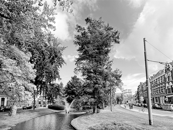 “城市熱島效應(yīng)”日益加劇,在市中心和老城區(qū)尤為明顯,成為鹿特丹迫切需要應(yīng)對(duì)的氣候挑戰(zhàn)。為此,鹿特丹通過(guò)一系列景觀策略為城市降溫,核心舉措是系統(tǒng)性增加“涼爽場(chǎng)所”——面積超過(guò)200平方米、炎熱時(shí)體感溫度能維持在38℃以下的公共空間。市政府與迪弗科托景觀事務(wù)所共同繪制“涼爽場(chǎng)所地圖”與“距離地圖”,評(píng)估現(xiàn)有涼爽空間分布,識(shí)別距離居民區(qū)超過(guò)300米(即世界衛(wèi)生組織建議標(biāo)準(zhǔn))的服務(wù)盲區(qū),重點(diǎn)關(guān)注市中心、老城區(qū)及部分新建社區(qū)。為實(shí)現(xiàn)降溫目標(biāo),鹿特丹采用綜合性景觀干預(yù)方案:增種樹(shù)木和設(shè)置遮陽(yáng)篷提供蔭涼;利用噴泉與植被增強(qiáng)蒸發(fā)冷卻效應(yīng);采用淺色鋪裝及增加綠化減少地表熱量吸收;結(jié)合水體景觀直接降溫;增設(shè)街道家具、提升步行空間品質(zhì),激活未被充分利用的區(qū)域。這些措施被整合進(jìn)覆蓋全市38個(gè)街區(qū)的“涼爽公共空間機(jī)會(huì)地圖”,將降溫策略與城市更新項(xiàng)目緊密結(jié)合,優(yōu)先改善服務(wù)不足的區(qū)域。